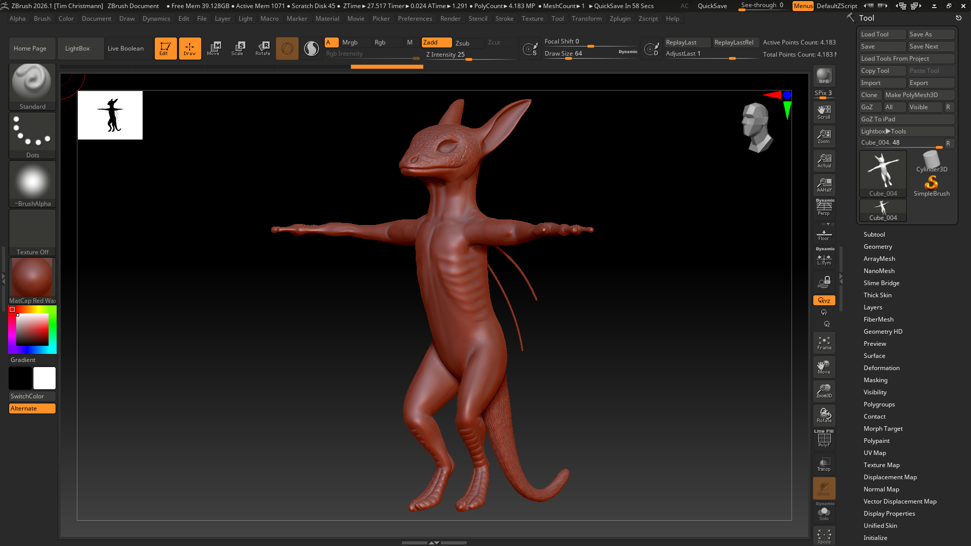 An experimental render exploring short fur on Silex’s back.