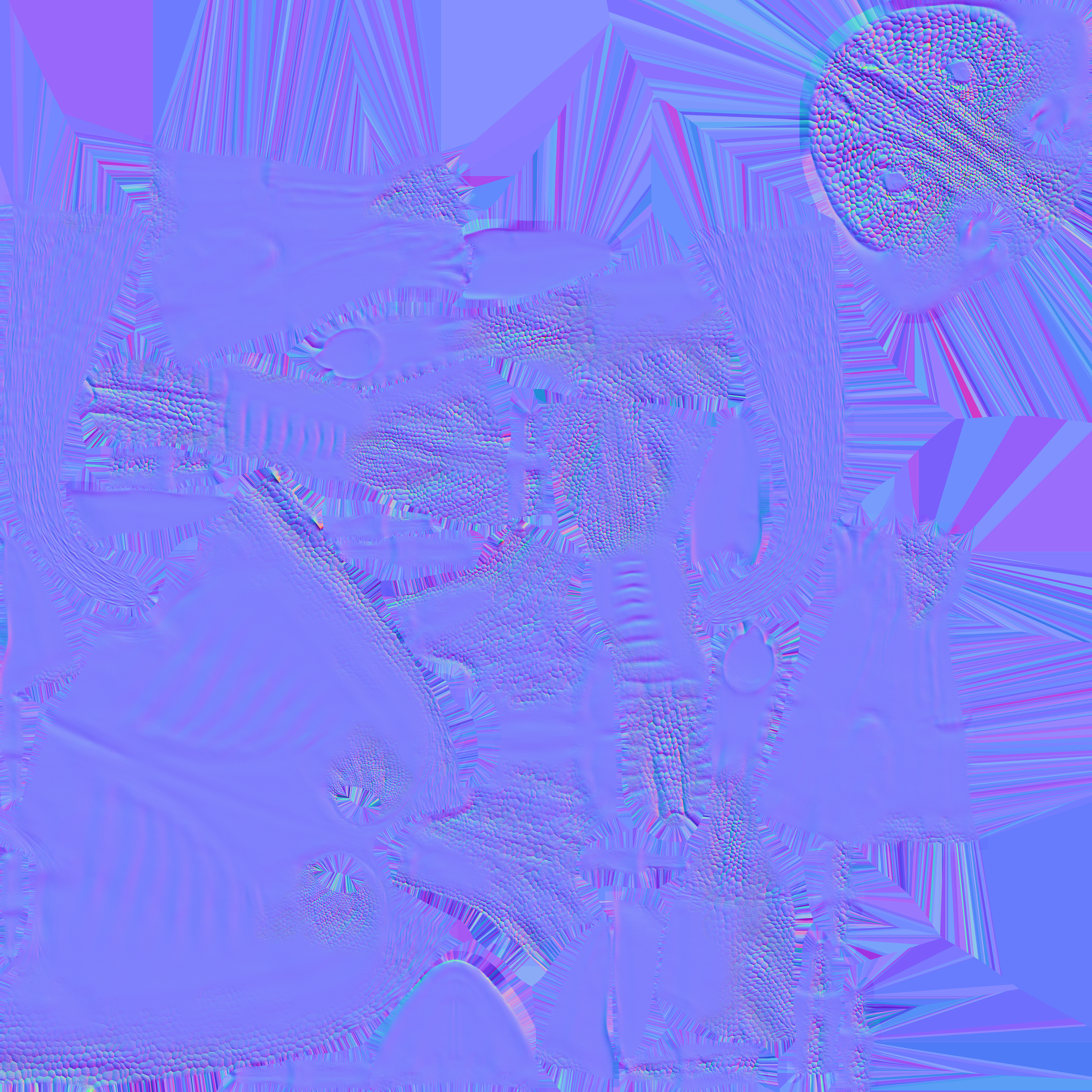 The initial blockout was created in Blender and exported to ZBrush for detailed sculpting. After refinement, the model was remeshed in ZBrush and brought back into Blender for UV unwrapping.